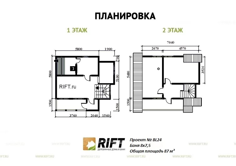 Высота 2-ого этажа | 2400 мм. | |